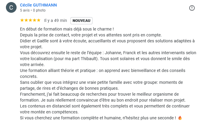 Ces avis reflètent l’implication que nous mettons dans votre formation, du moins nous l’espérons.