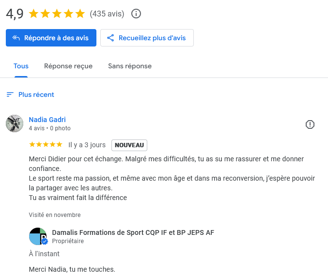 4,9/5 sur Google avec ~430 avis.